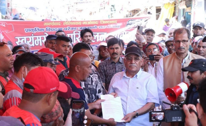 अध्यक्ष पुष्पकमल दाहाल ‘प्रचण्ड’ले मंगलबार प्राकृतिक विपत्तिमा परेका नागरिकको लागि राहत, पुनर्स्थापना र पुनर्निर्माणका लागि पार्टीले सुरु गरेको स्वयंसेवक परिचालन अभियानको शुभारम्भ गरेका हुन् ।