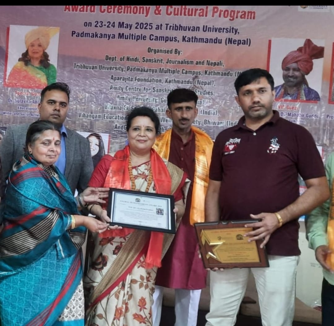 सम्मेलनमा प्रा.डा. जयालक्ष्मी प्रधान (क्याम्पस प्रमुख, पद्मकन्या बहुमुखी क्याम्पस, काठमाडौं )लाई शिक्षा एवम् अनुसन्धानमा महत्त्वपूर्ण भूमिका निर्वाह गरेबापत अपराजिता समूह र गुरु विद्यापीठ, रोहतक (भारत)ले